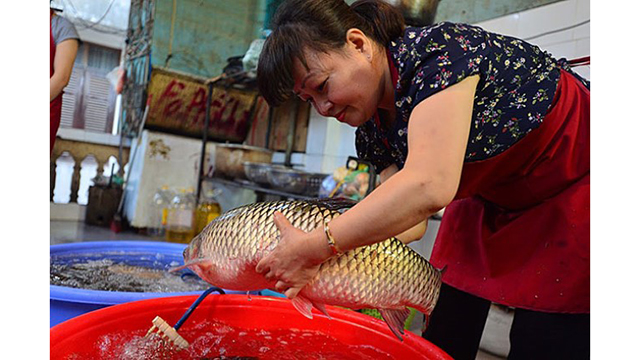 范氏青恒女士抓魚準備做紅燒。