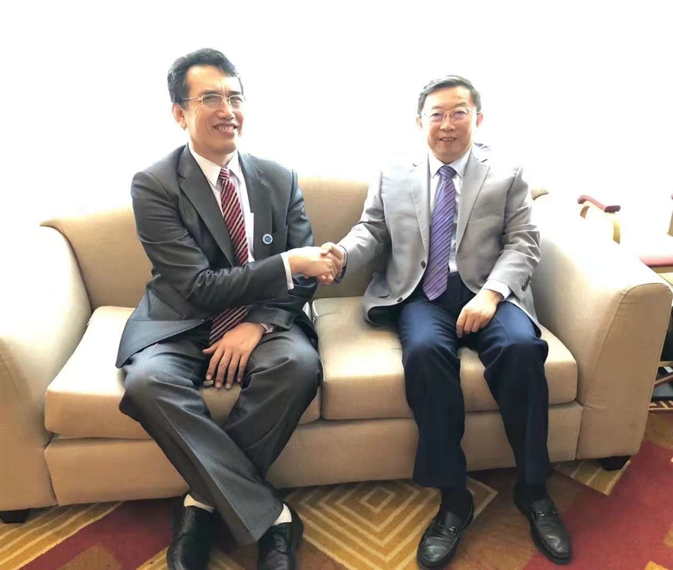 2018年9月,中國—東盟商務(wù)理事會(huì )執行理事長(cháng)許寧寧與老撾科技部副部長(cháng)交談。